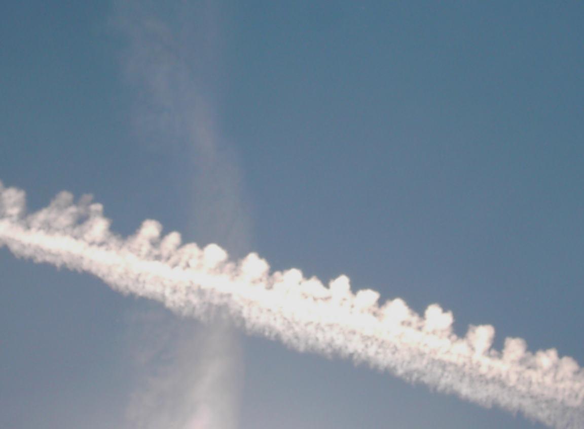 Im Gegensatz zu dieser gänzlichen Strukturauflösung blieben die meisten bisher beobachteten und fotografierten Chemtrailspuren oft noch 1-3 Stunden lang in Chemtrailnebeln erkennbar. (s. Chemtrails-Kennzeichen)