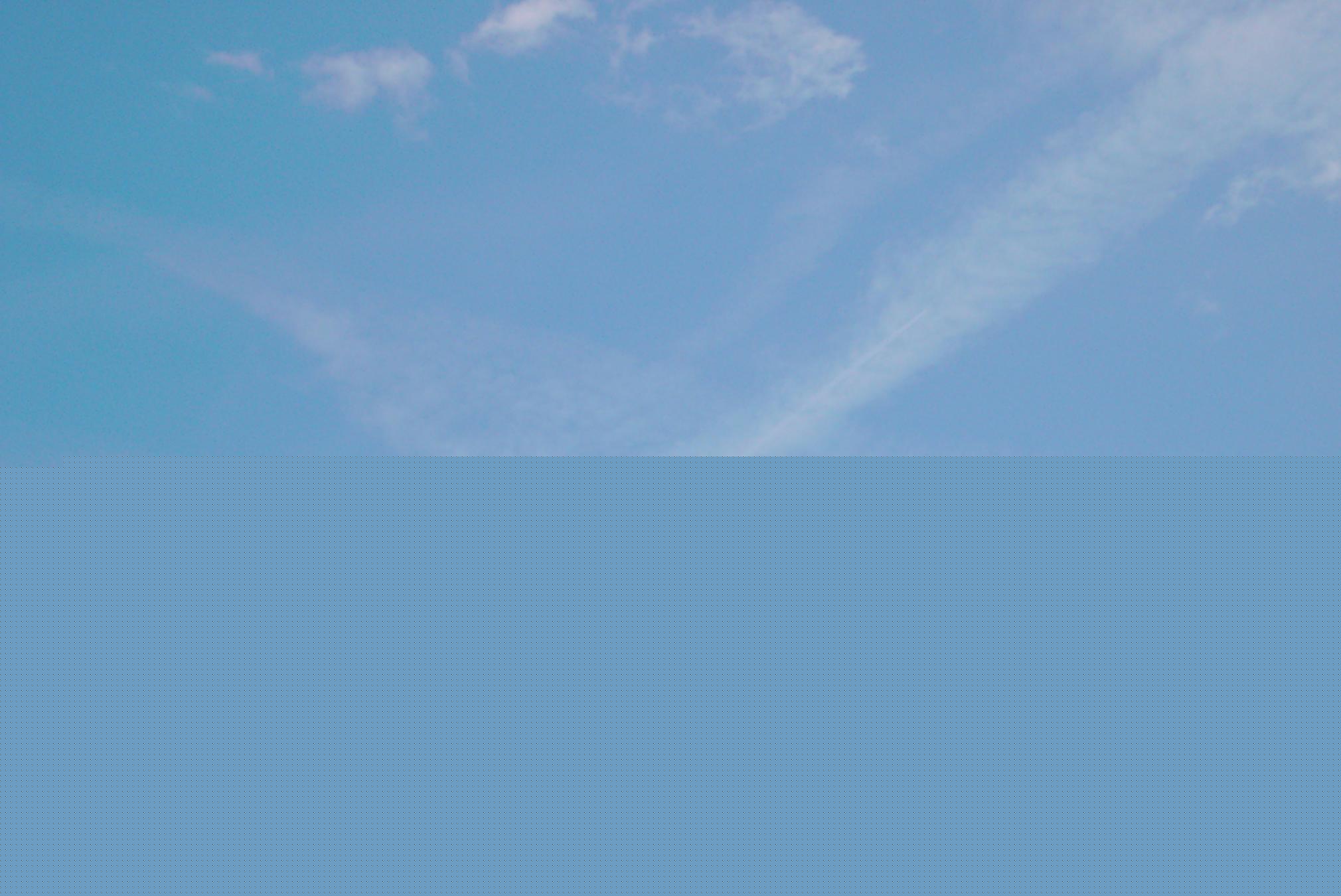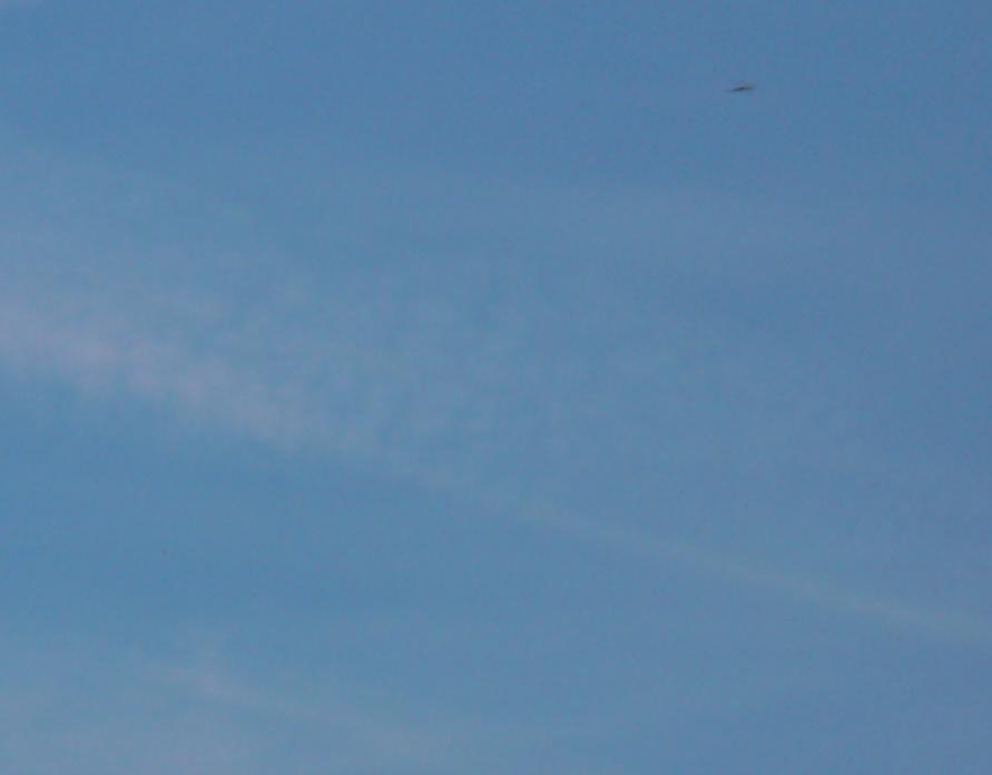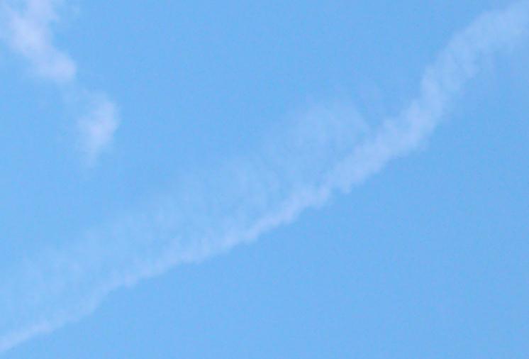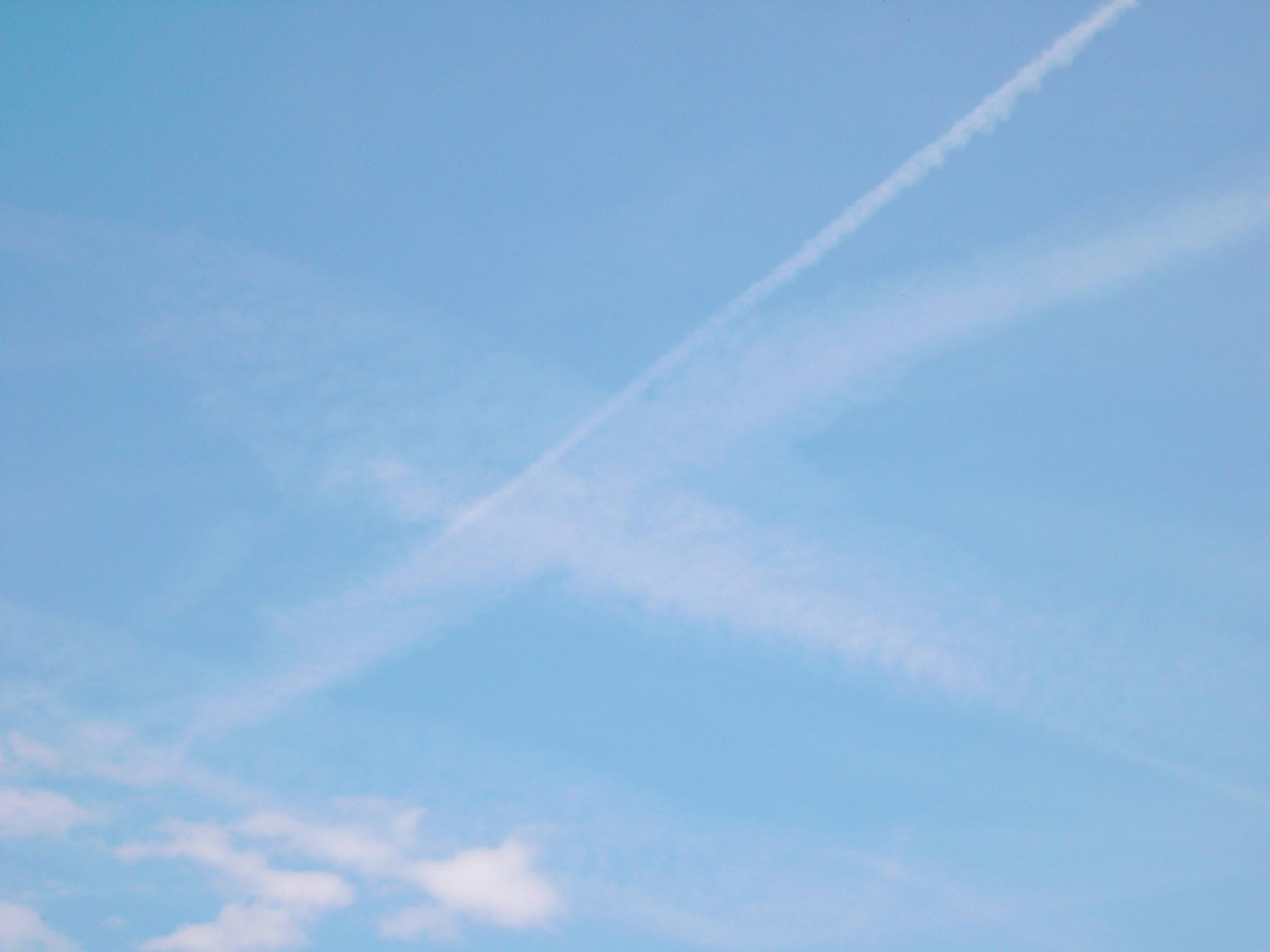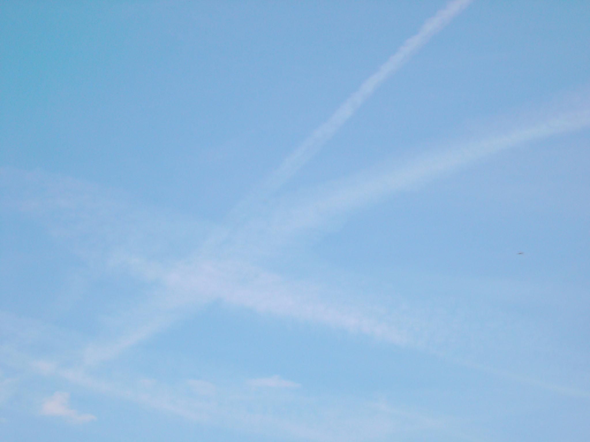 Jene Chemtrails-Flüge, in denen offensichtlich Chemikalien verwendet werden, durch die eine raschere, flockig-unauffällige Ausweitung der Pseudo-Kondensstreifen erfolgt, scheinen zuzunehmen. Anbei ein Beispiel vom 20.06.04 über dem Bodensee, wie sich durch diesen Chemtrailstyp auch gekreuzte Flugbahnen unauffälliger und rascher in Wolkenformen auflösen lassen:
