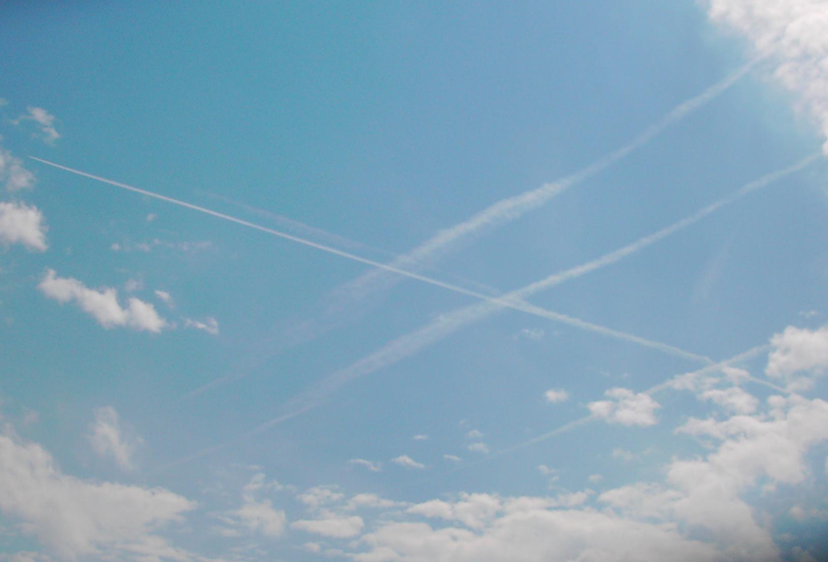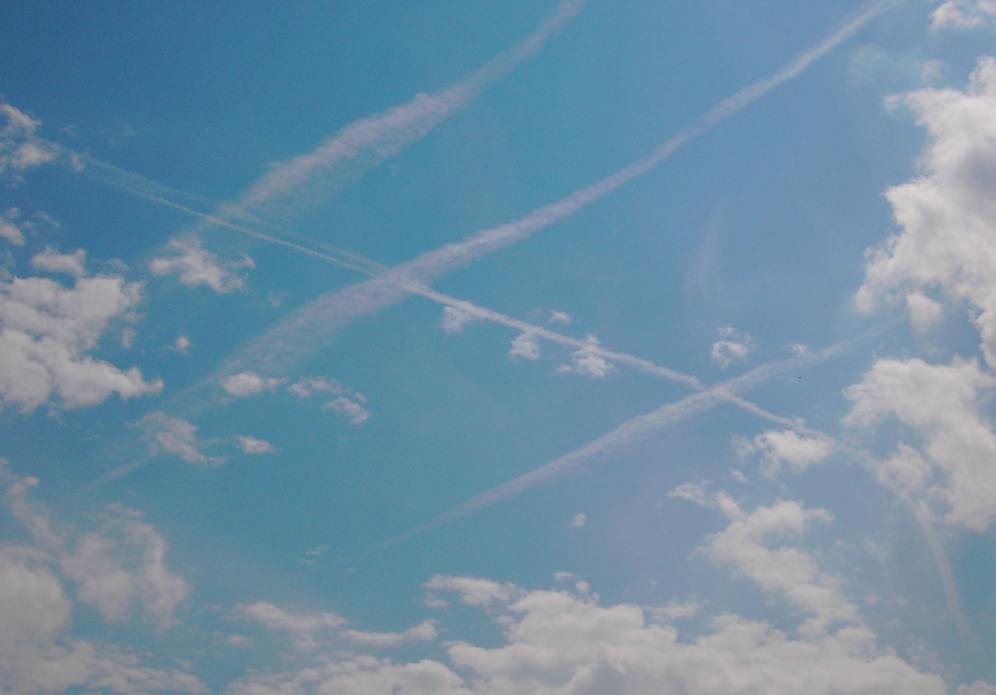 Ausflockende, parallele und gekreuzte Chemtrails zur Wolkenerzeugung