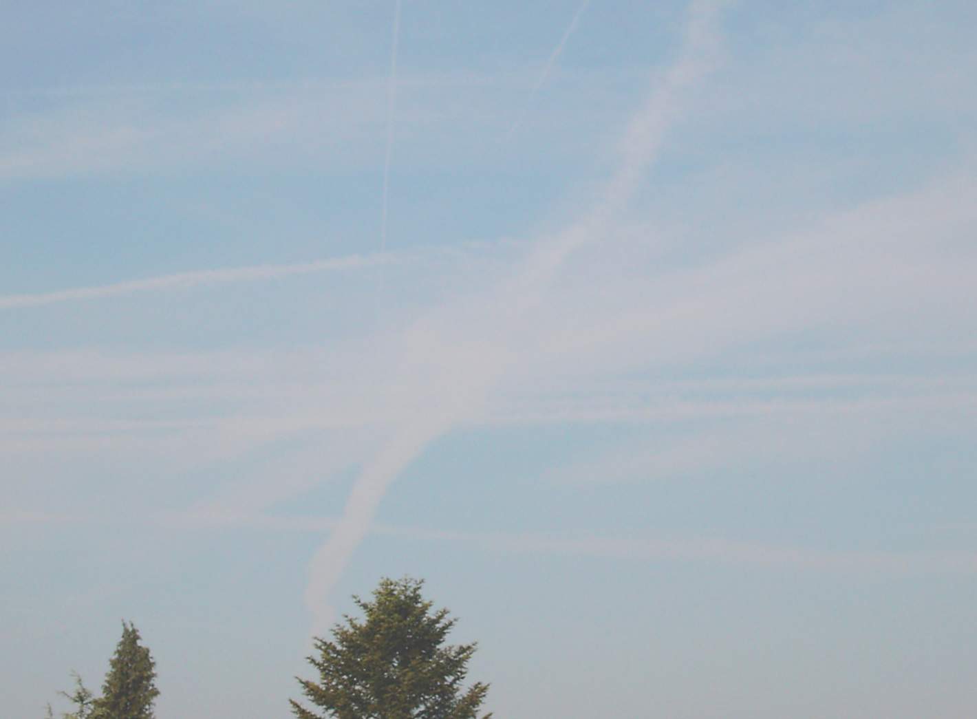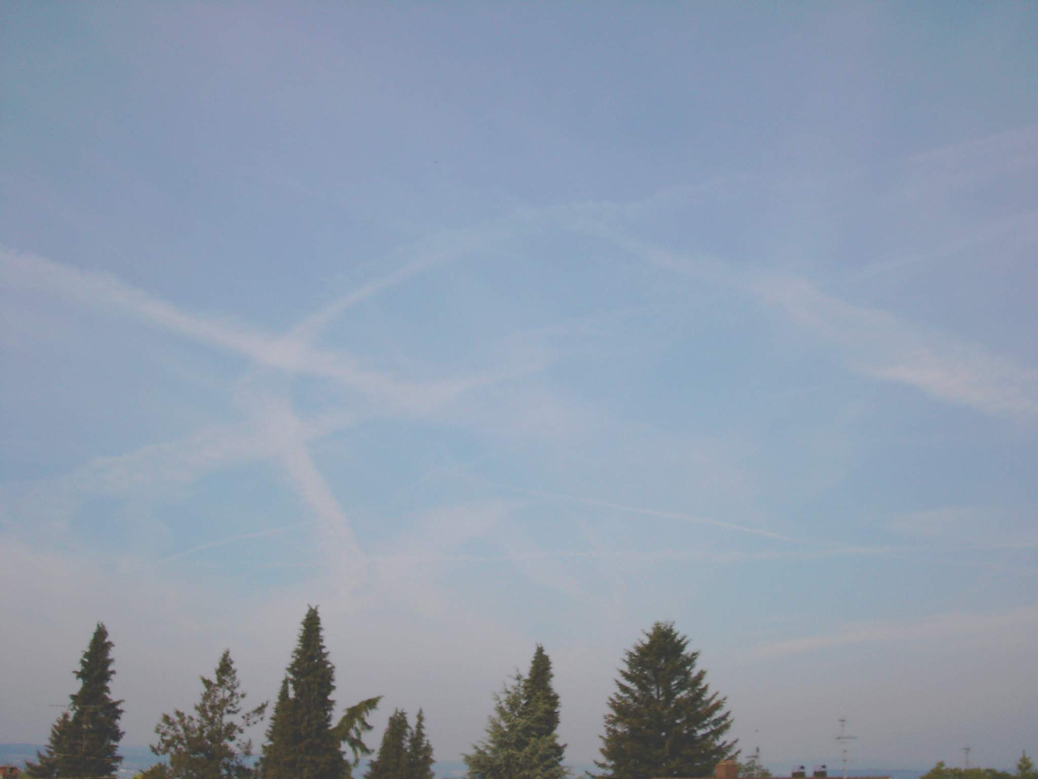 Übrigens: Falls Sie nun glauben sollten, daß solche Lichtvernebelungs- und Luftvergiftungspraktiken bevorzugt am Bodensee stattfinden würden, sollten Sie in Ihrem Gebiet den Himmel genauer beobachten.Sie werden sich dann höchstens noch fragen, wo in Deutschland bzw. Europa nicht dasselbe genauso oft und intensiv geschieht...