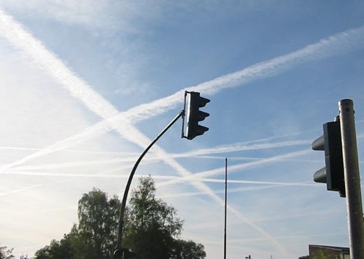 - keine Schilderung der Unterschiede zwischen 'normalen' und chemisch herbeigeführten Wolkenstreifen, kein Eingehen auf die andersartige, charakteristische Ausdehnung der Kondensstreifen