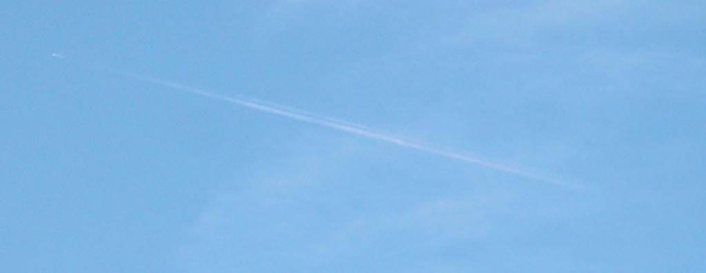 Anmerkung: Auch wenn diese Aufnahmen äußerlich unspektakulär sind, sind sie es inhaltlich: Noch deutlicher kann man kaum beweisen, daß scheinbar aus dem Nichts aus Flugzeugen schlagartig Flugstreifen entstehen und enden. Dies ist bei normalen Kondensstreifen nicht der Fall. Folglich darf/muß daraus auf Einsatz von Sprühchemikalien geschlossen werden. Diesen Flugstreifen gibt man daher zu recht die Bezeichnung 'Chemtrails'.