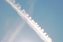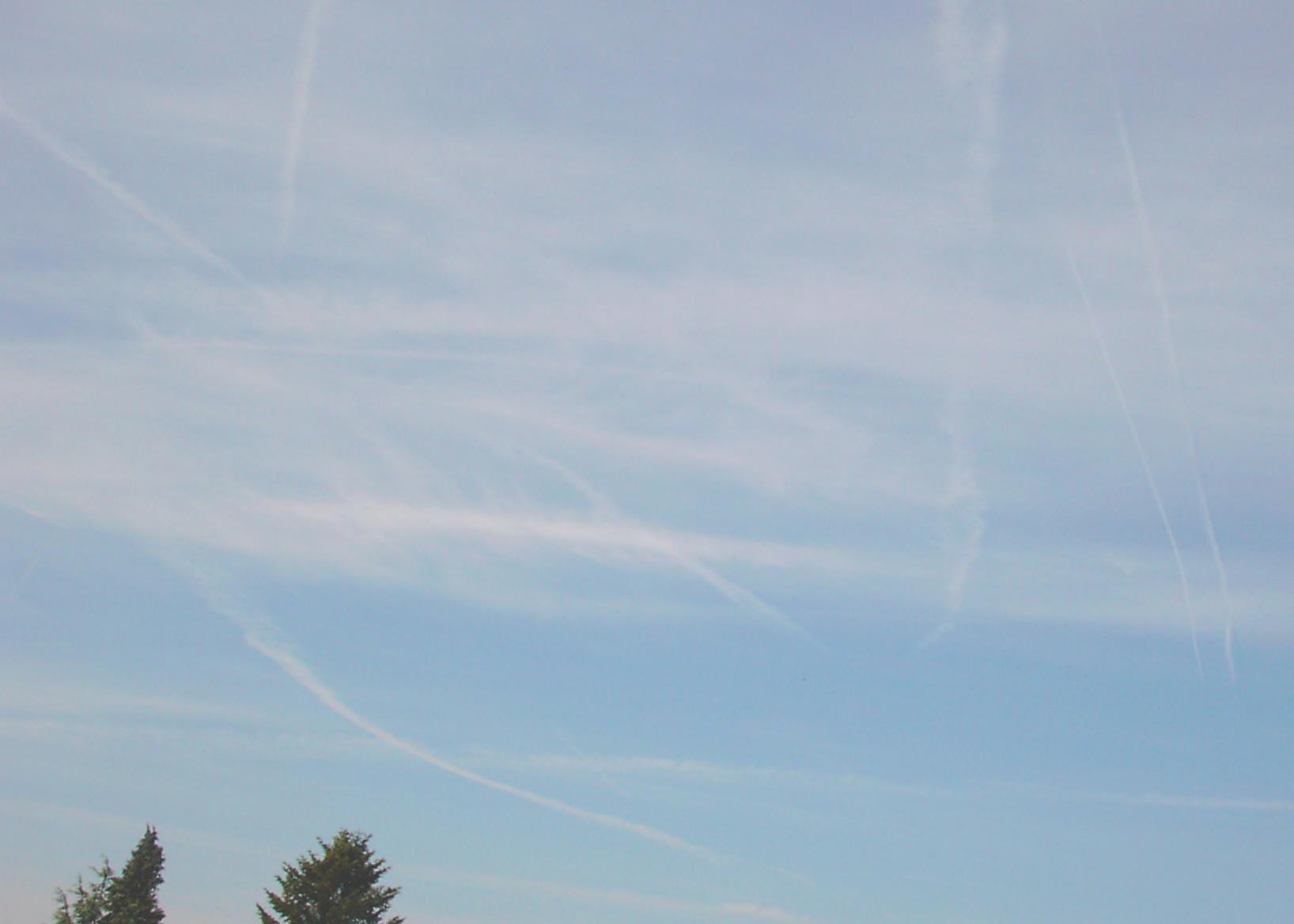Offenbar ist es unseren Wetter-Controllern noch nicht gelungen, aus Welsbach-Partikeln eine ordentliche Schäfchenwolke zu designen! (die Fortschritte sind inzwischen 9/2004 aber unverkennbar... d. Hg.)