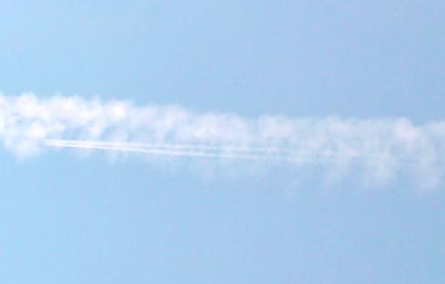 Im Unterschied dazu entstehen bei Chemtrail-Flügen immer dicke Kondensstreifen, die sich nicht nach wenigen Sekunden bis Minuten auflösen, sondern die selbst beginnen, schwadenförmige Nebel-Wolkenbänke zu bilden.