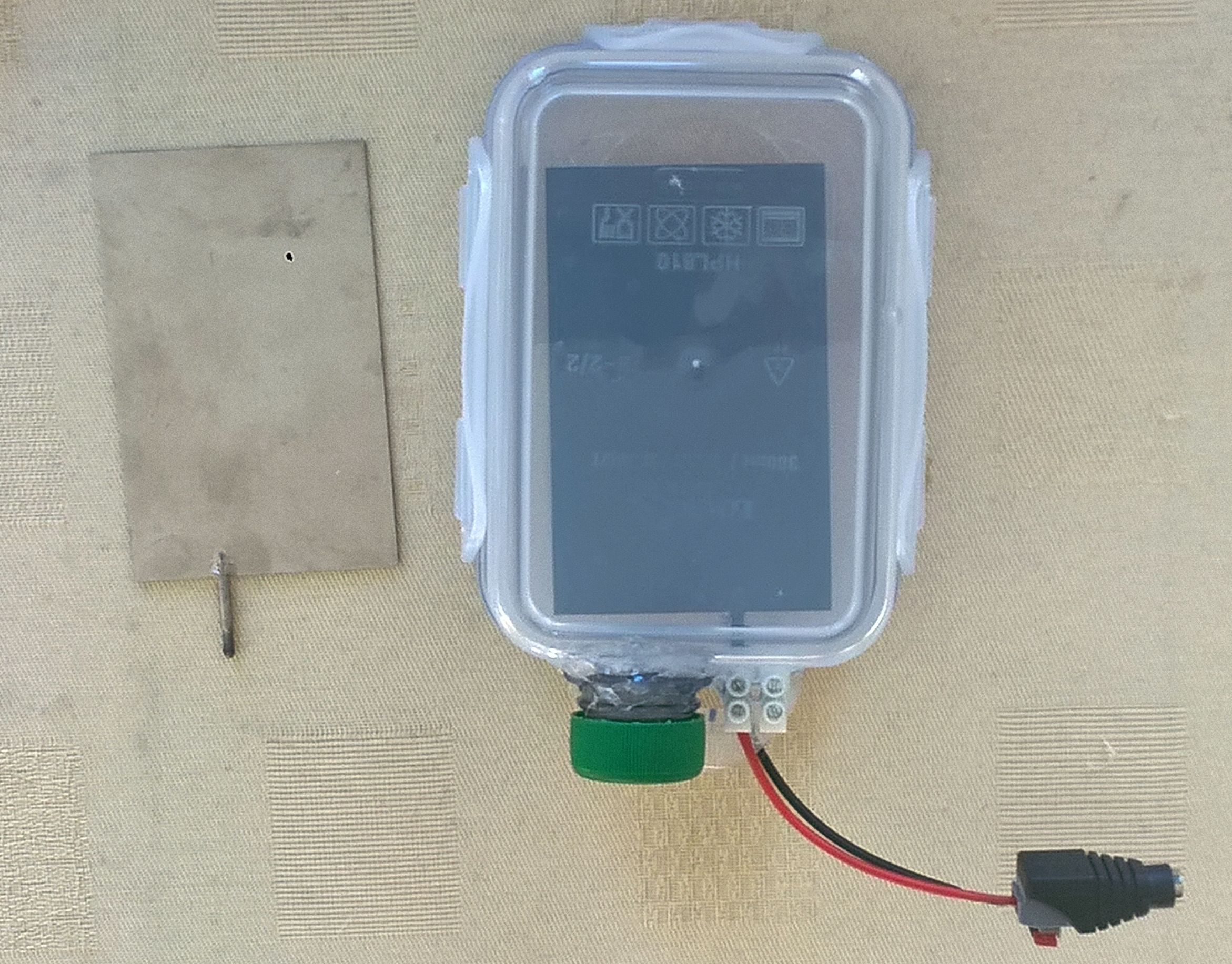 Bildbeschreibung: Der fertige Innenteil wird an das Netzschaltteil (3-36 Volt) angeschlossen und kann danach in den 1,3 L fassenden Behälter gestellt, mit Elektrolytwasser gefüllt und dann mit Gleichstrom betrieben werden.