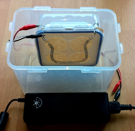 - Die Art und Menge der Zumischung an Magnesium, Salz oder speziellen Mineralien etc. kann je nach Zweck gewählt werden. Wasserstoffgas entsteht dadurch schon wenige Sekunden nach dem Elektrolysebeginn, wenn man eine ausreichend große Spannung (ich verwende ein 24 Volt., 2 A-Gerät) verwendet.